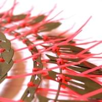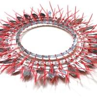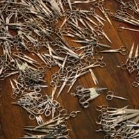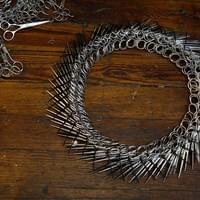 Carrie Mae Rose acquired 75 pounds of TSA confiscated scissors from eBay. Inspired by the post-9/11 security measures and the impact on personal belongings, Rose questions the effectiveness of confiscating sharp objects from travelers and ultimately asking, "What makes people feel safe?" She decided to repurpose these items thaat were confiscated during the era of Weapons of Mass Destruction for her sculpture series, titled Confiscated Weapons of Mass Construction.